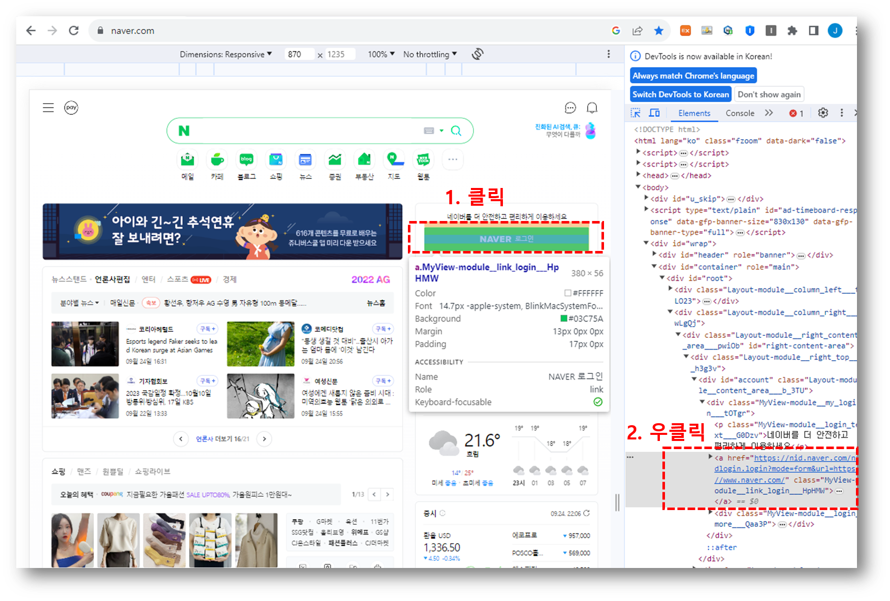네이버 화면에서 F12 키를 눌러주자.