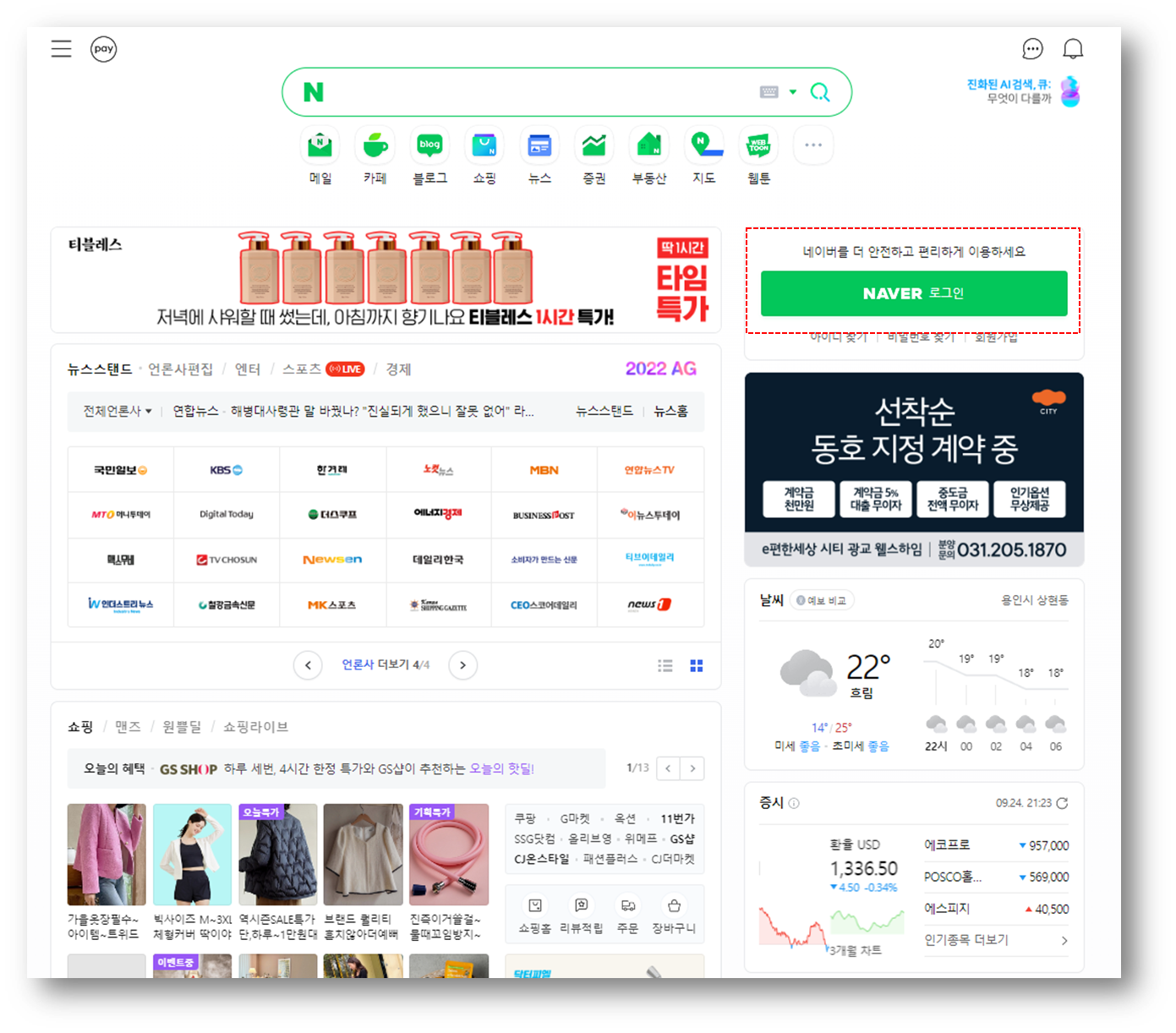 우측 상단에 있는 NAVER 로그인 버튼을 클릭해보도록 하자.
