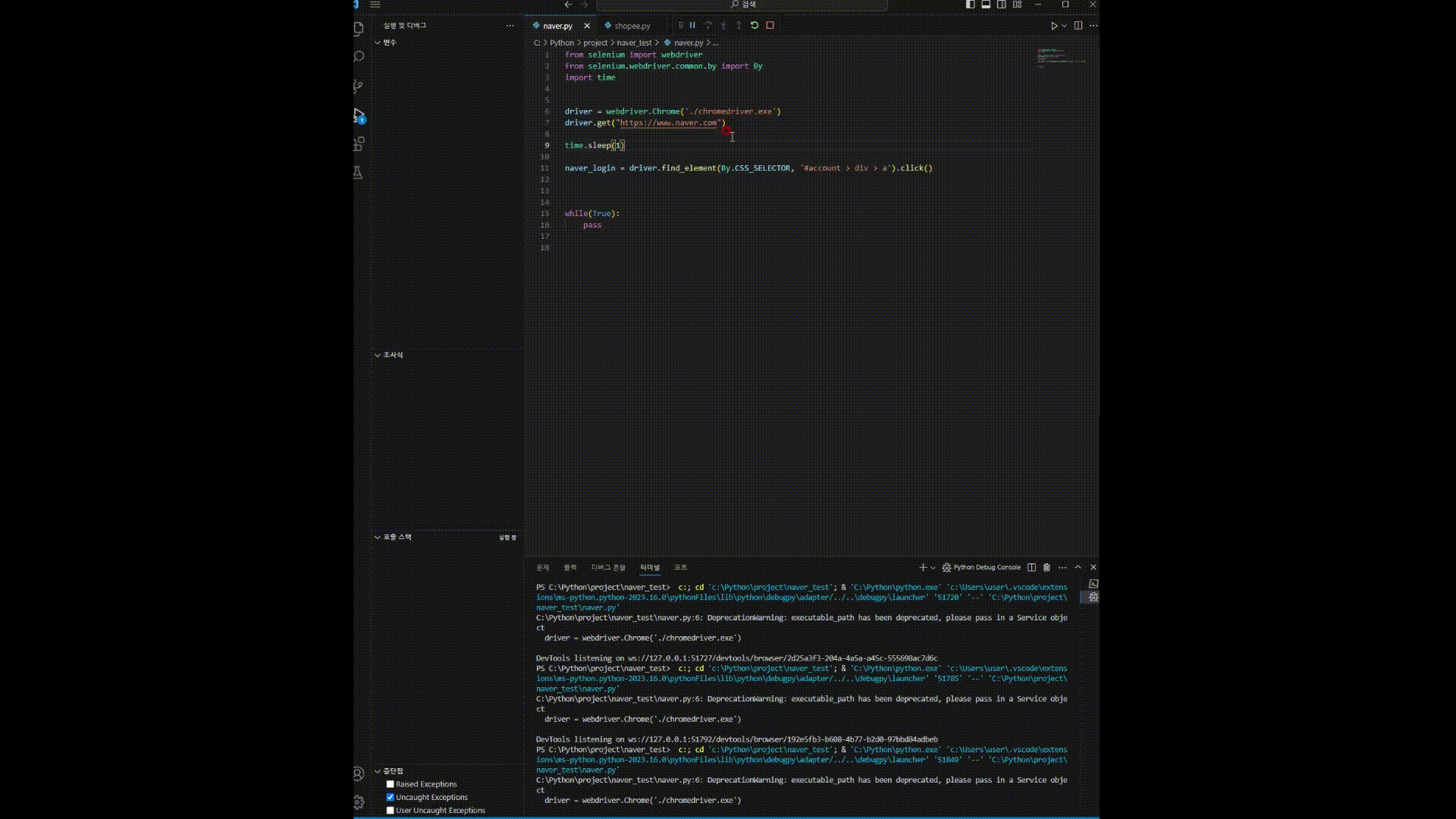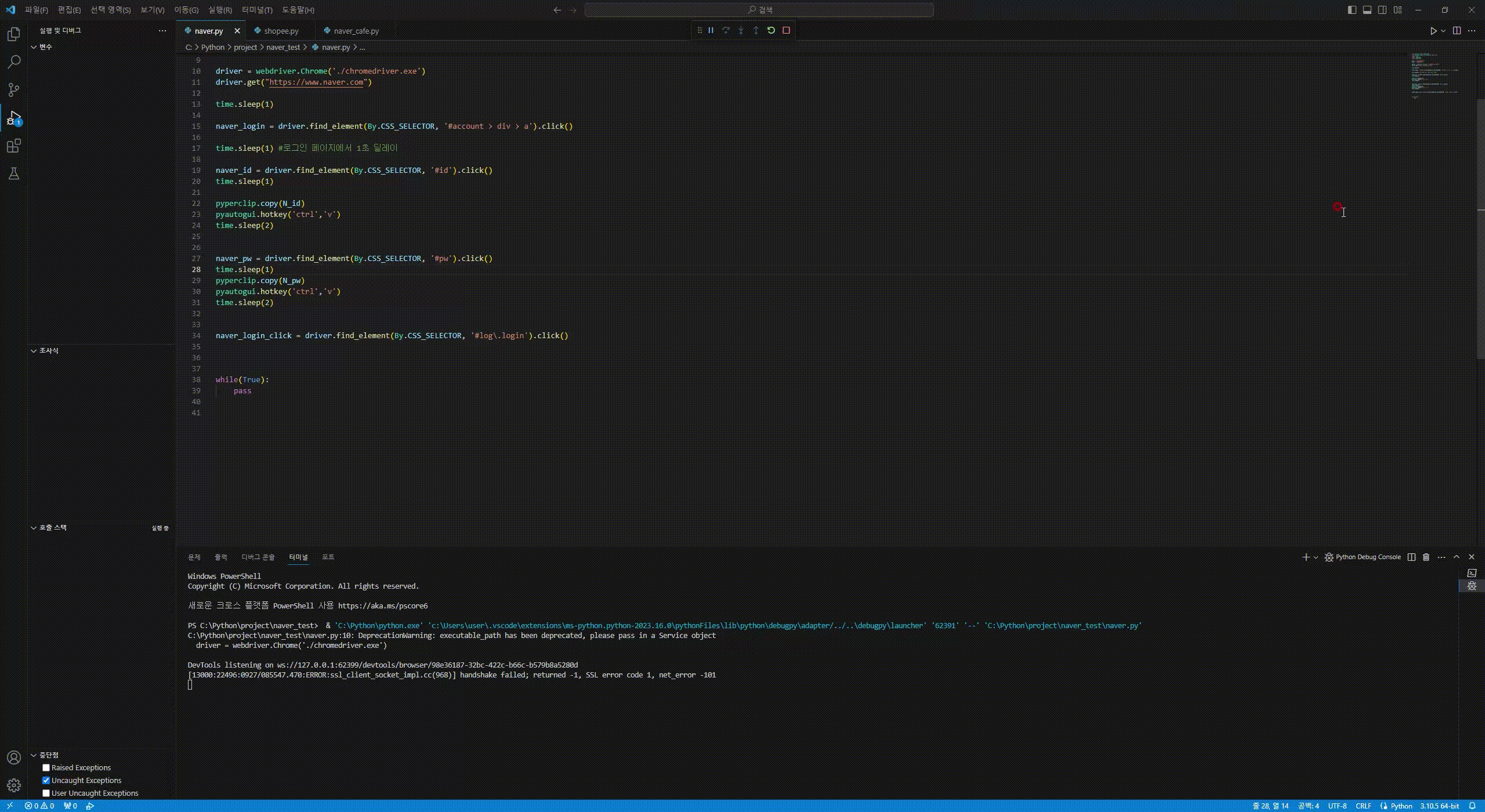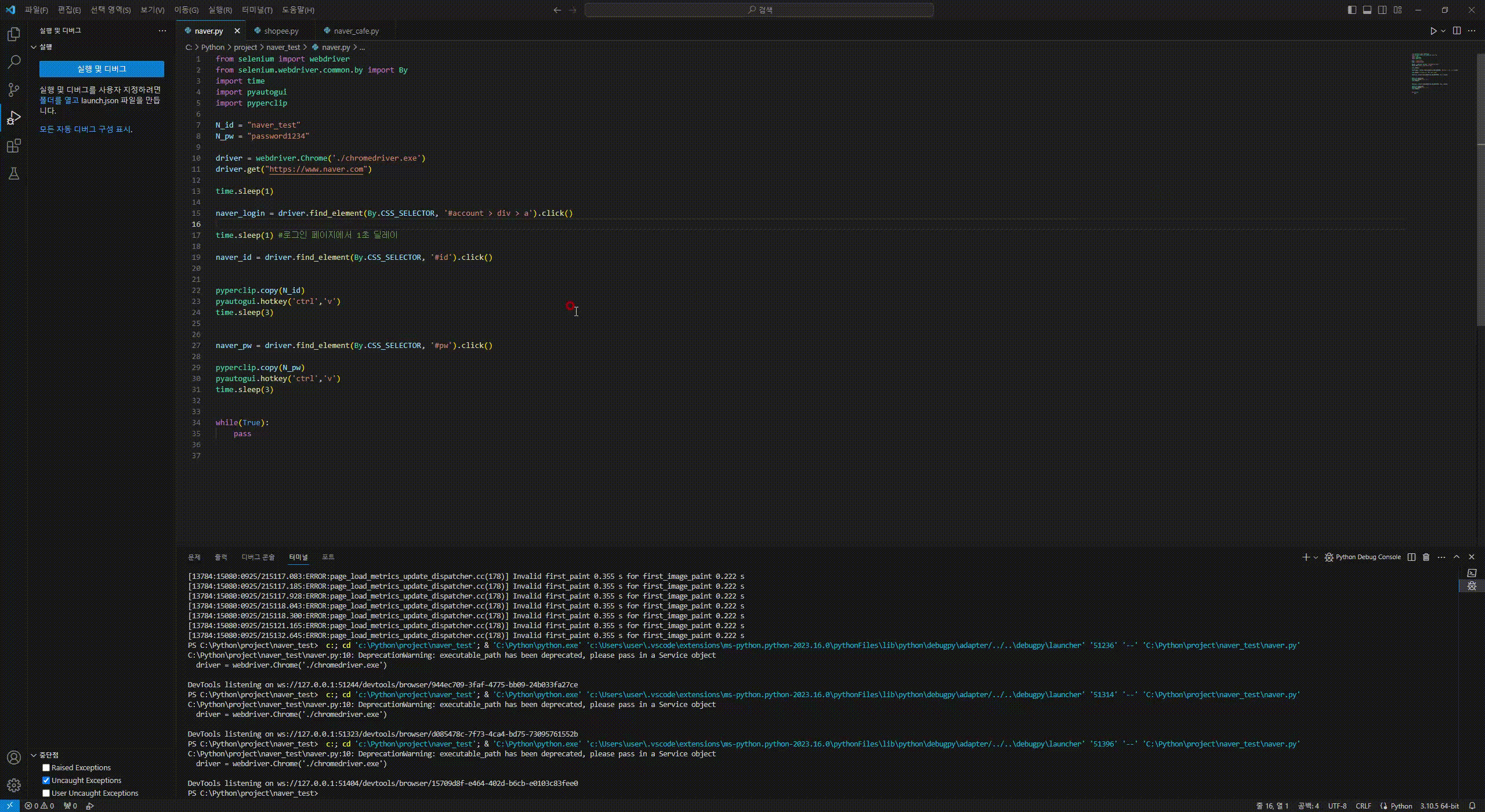 파이썬과 VScode, 셀레니움, 구글 드라이버가 모두 설치되었다면 네이버 로그인 하는 프로그램을 구현해보자.