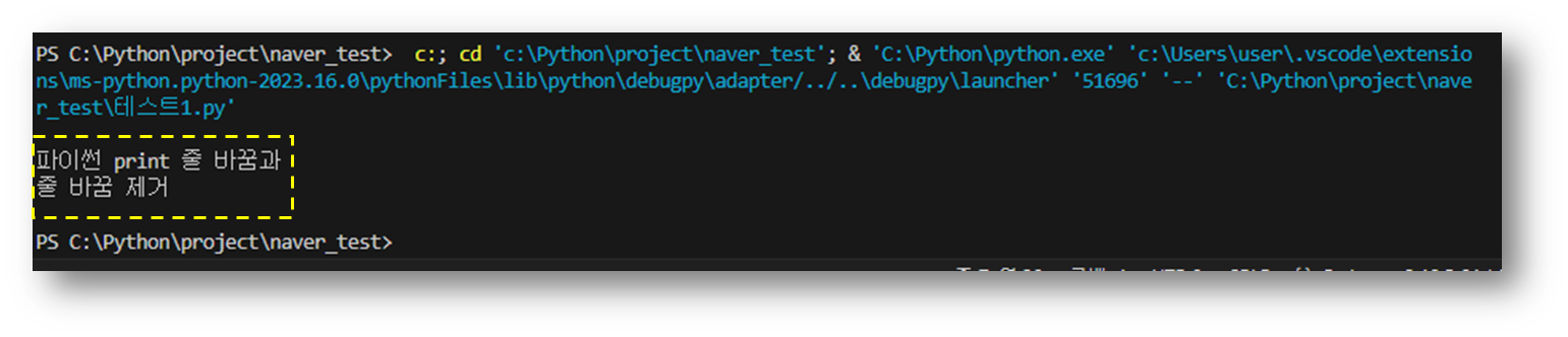 print("파이썬 print 줄 바꿈과 줄 바꿈 제거")