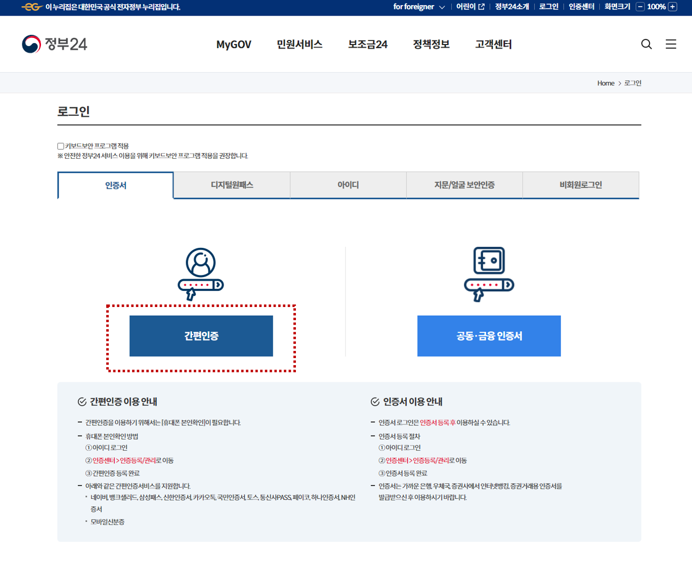 공인인증서보다 이게 간편한것 같다. 아무튼 편한 방법을 선택하여 로그인을 하도록 하자