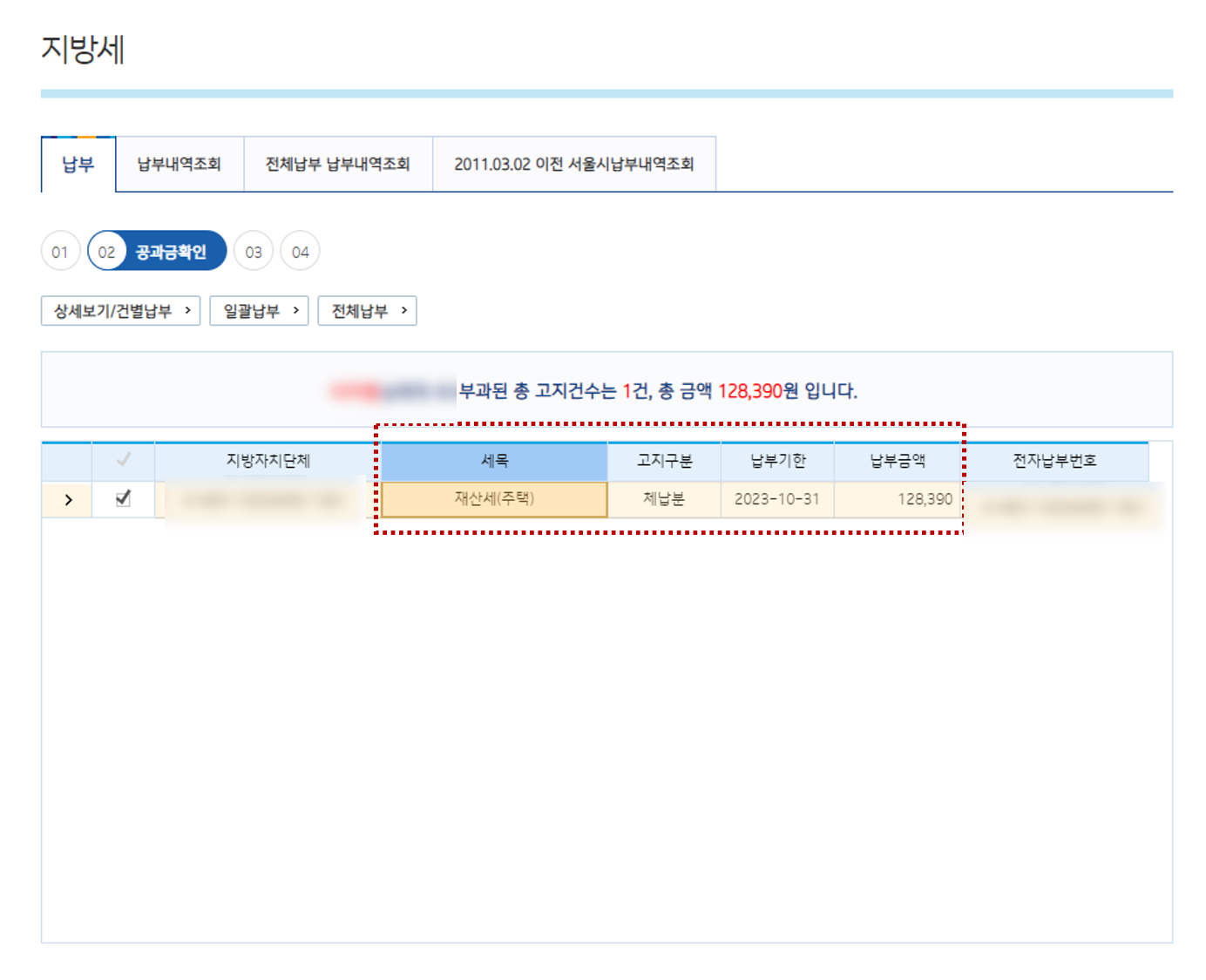 이번달 말까지 납부해야 하는 재산세가 128,390원이다. 아마 미리 고지를 받았을 텐데 잊어버리고 세금을 내지 않은것 같다. 까지거 후딱 내버리자.