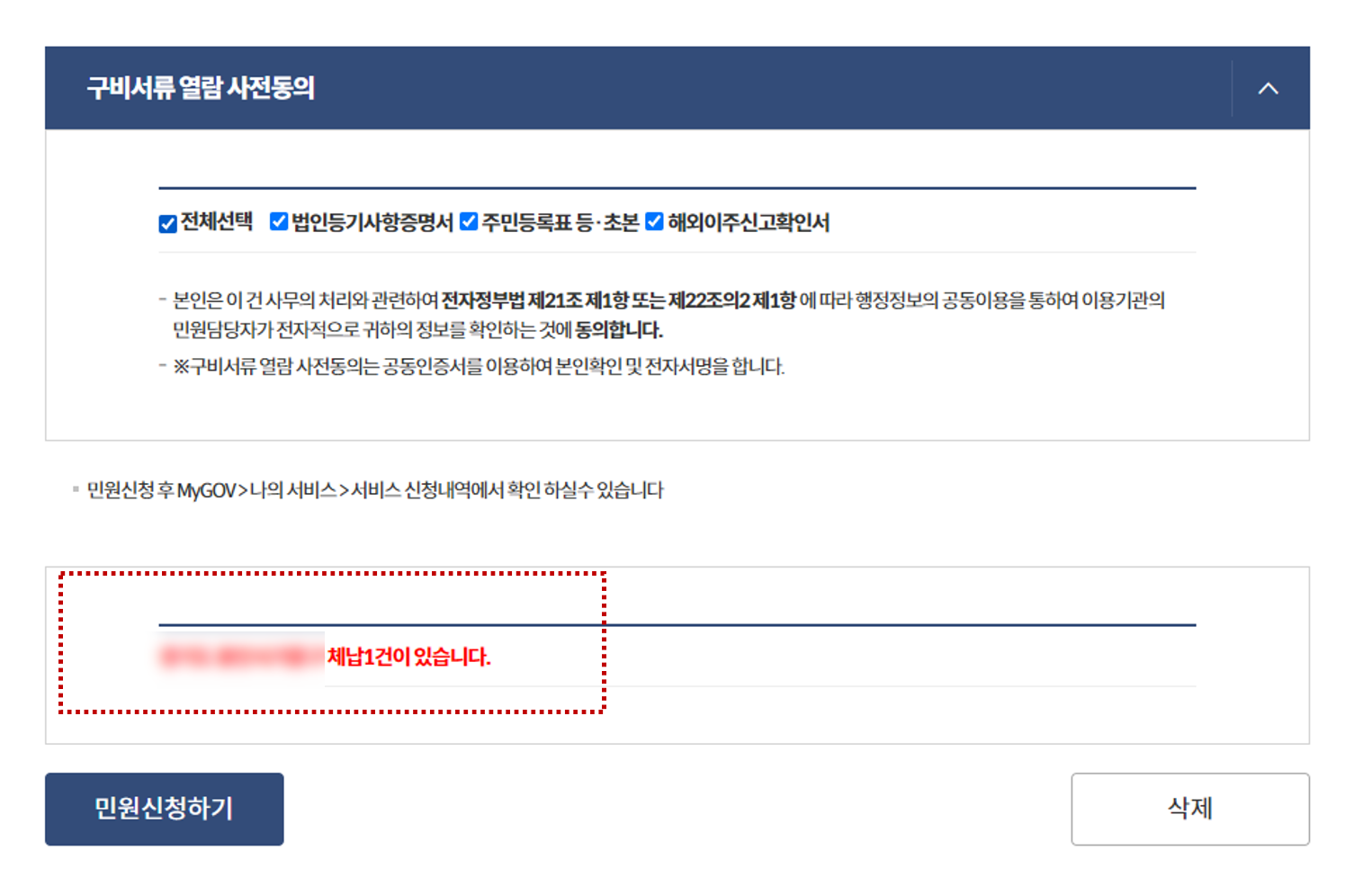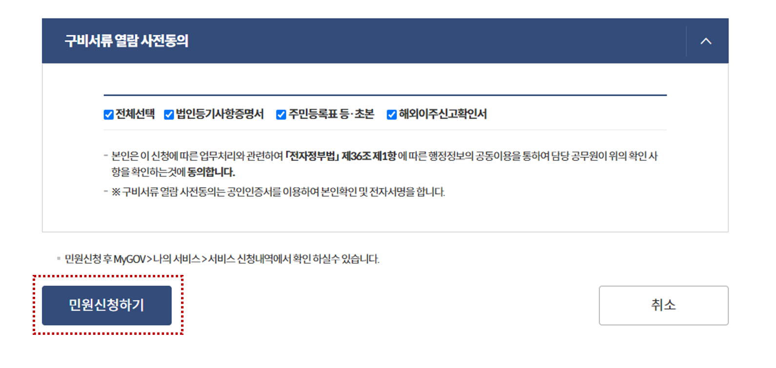 모든 정보를 입력했으면 마지막으로 민원신청하기 버튼을 누르면 된다.