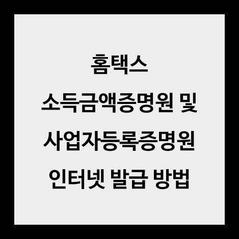 국세청 홈택스에서 소득금액증명원과 사업자등록증명원을 발급 받는 방법에 대하여 알아보자.