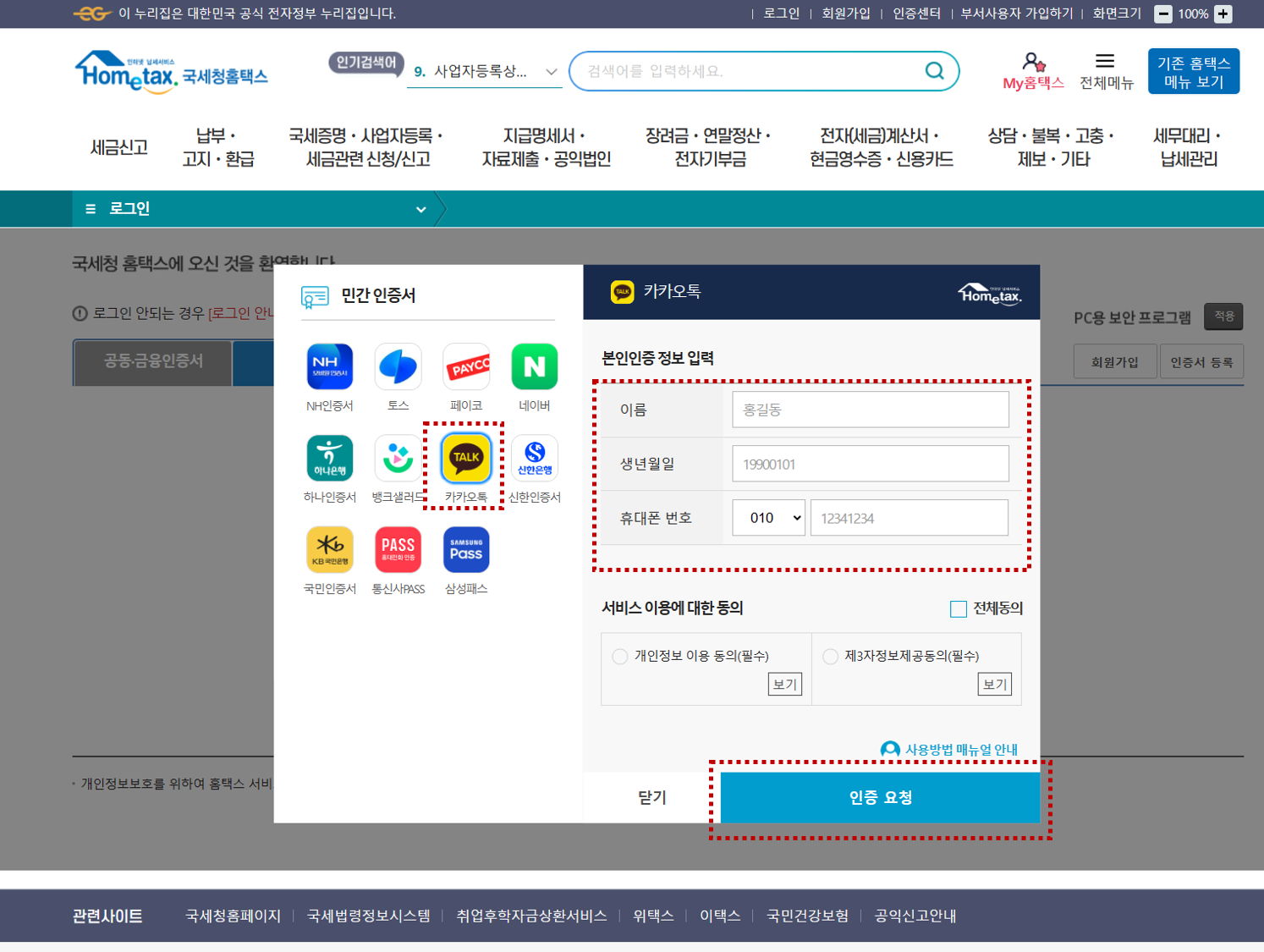 나는 카카오톡 인증서를 활용하여 로그인을 하였다.