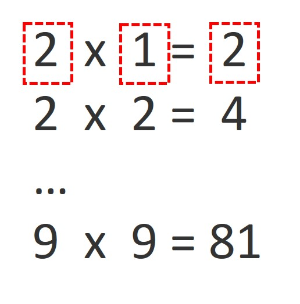 바뀌는 곳을 변수로 처리하고 연산을 하면 쉽게 구구단을 구현할 수 있을 것이다.