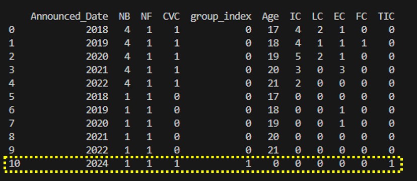 df.loc[10]=[2024,1,1,1,1,0,0,0,0,0,1]
