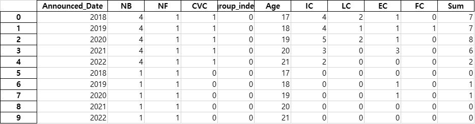 우리가 넣고 싶은 행의 index 값을 통하여 행을 입력하는 방식이다. 엑셀파일에는 인덱스라는 열이 없었지만 데이터프레임으로 변환을 하게 되면 자동으로 인덱스가 생긴다. 자동으로 생기지 않고 내가 인덱스를 관리하고자 한다면 엑셀파일을 열때 인덱스를 지정하면 된다. 그 방법은 나중에 또 다루겠다.