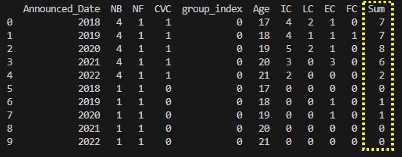 df['Sum']=df['IC'] + df['LC'] + df['EC'] + df['FC']