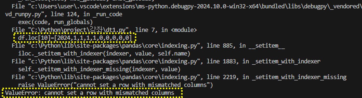 지금 예시에서는 불편할 수 있지만 앞으로 나중에는 for문을 통하여 자동으로 인덱스를 지정하여 값을 넣어줄 것이고, 행을 추가하는 더 편한 방법에 대하여 알아볼 것이다. 아무튼 이 방법이 가장 기초기 때문에 이 방법은 꼭 알아두도록 하자