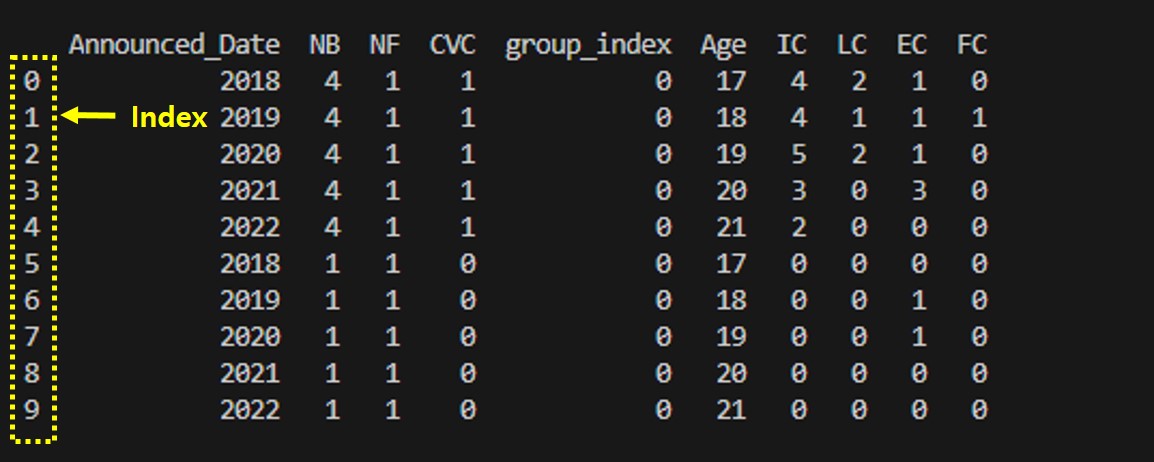 아무튼 데이터프레임을 출력해보면 열이름이 없는 열이 생기는데 이것이 인덱스이다.
