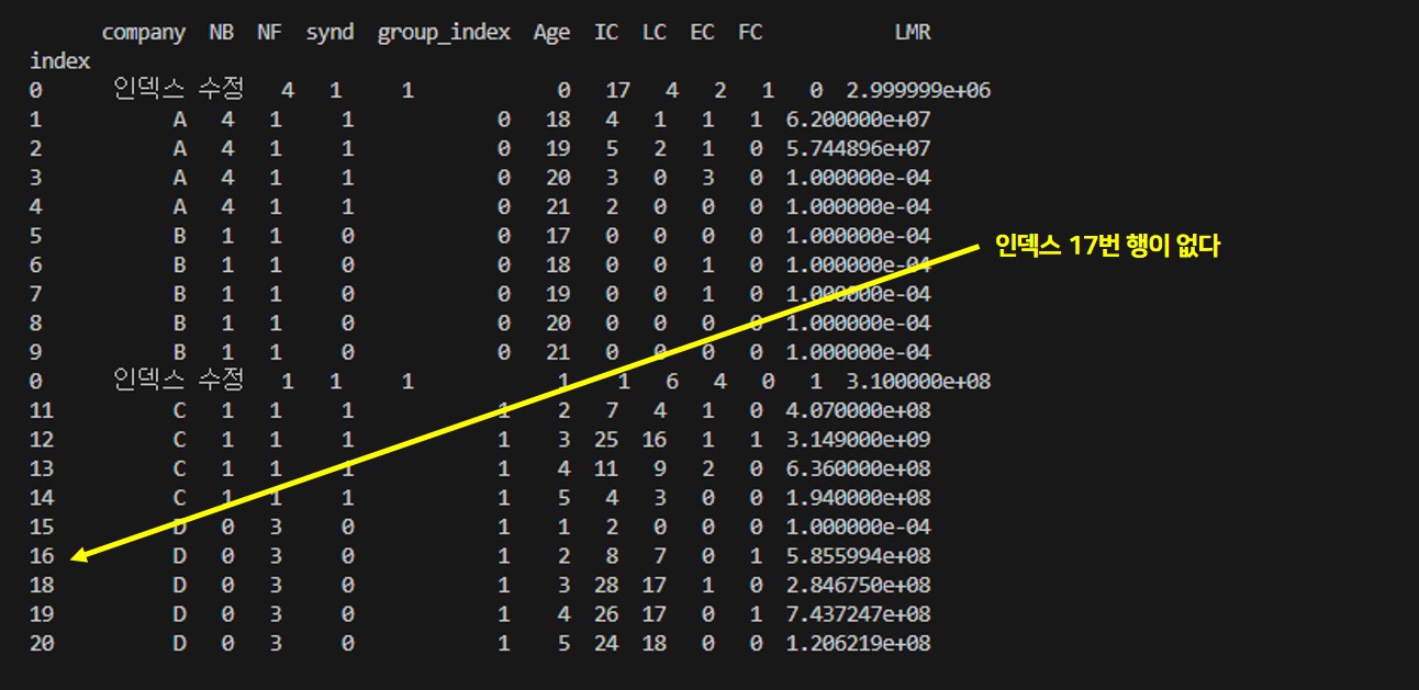 이렇듯 데이터프레임에서 인덱스는 항상 순차적으로 정렬되는 것은 아니다. 데이터를 전처리하는 과정에서 인덱스가 꼬일 수 있다는 것을 항상 명심해야 한다.
