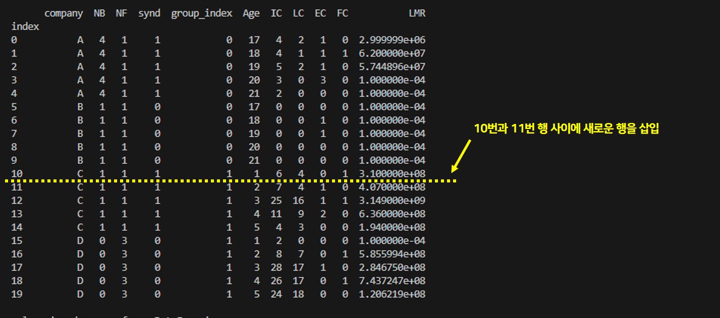 파이썬 (Python) 데이터프레임 loc를 이용한 행(Row) 삽입