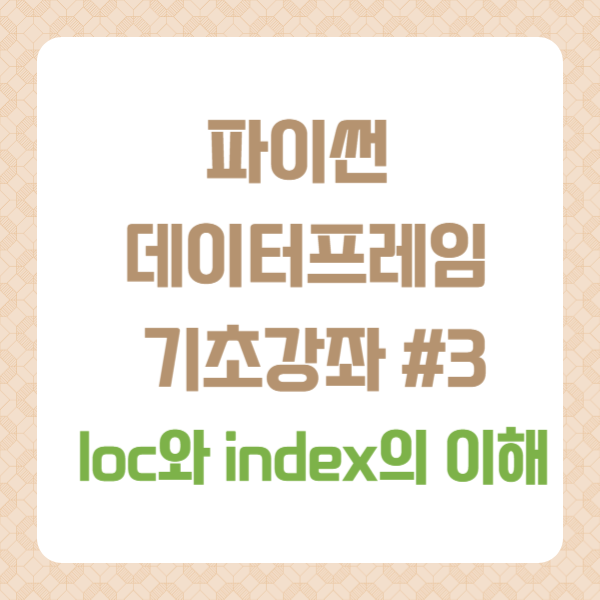 데이터 프레임에서는 인덱스의 개념이 매우 중요하다. loc뿐만 아니라 iloc 까지 다룰려면 이 개념을 이해하고 넘어가는 것이 좋다.