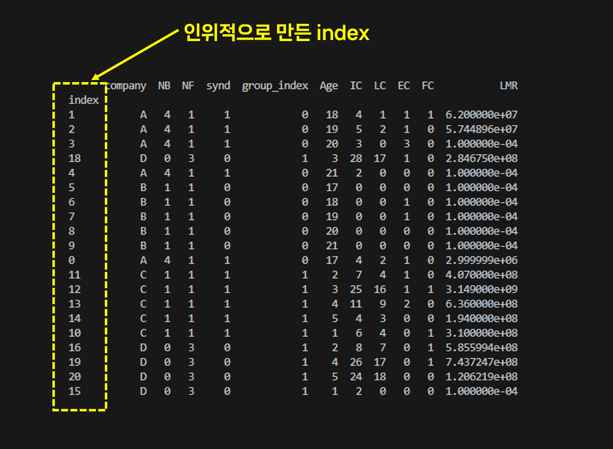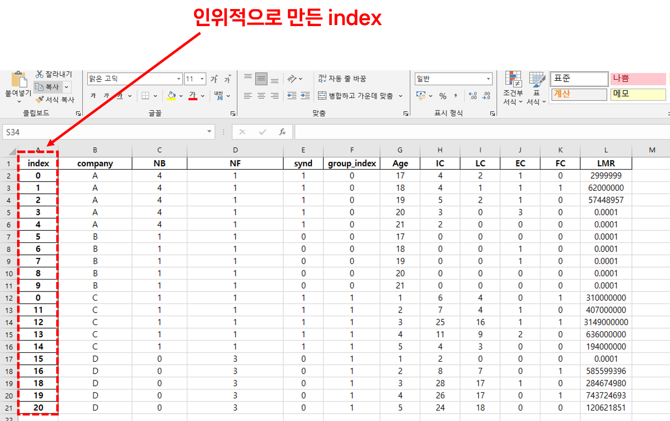 지난번 실습했던 파일을 한번 열어보자. 파일을 열어보면 index 열이 보일 것이다. 이건 우리가 만든 인덱스 열이다.