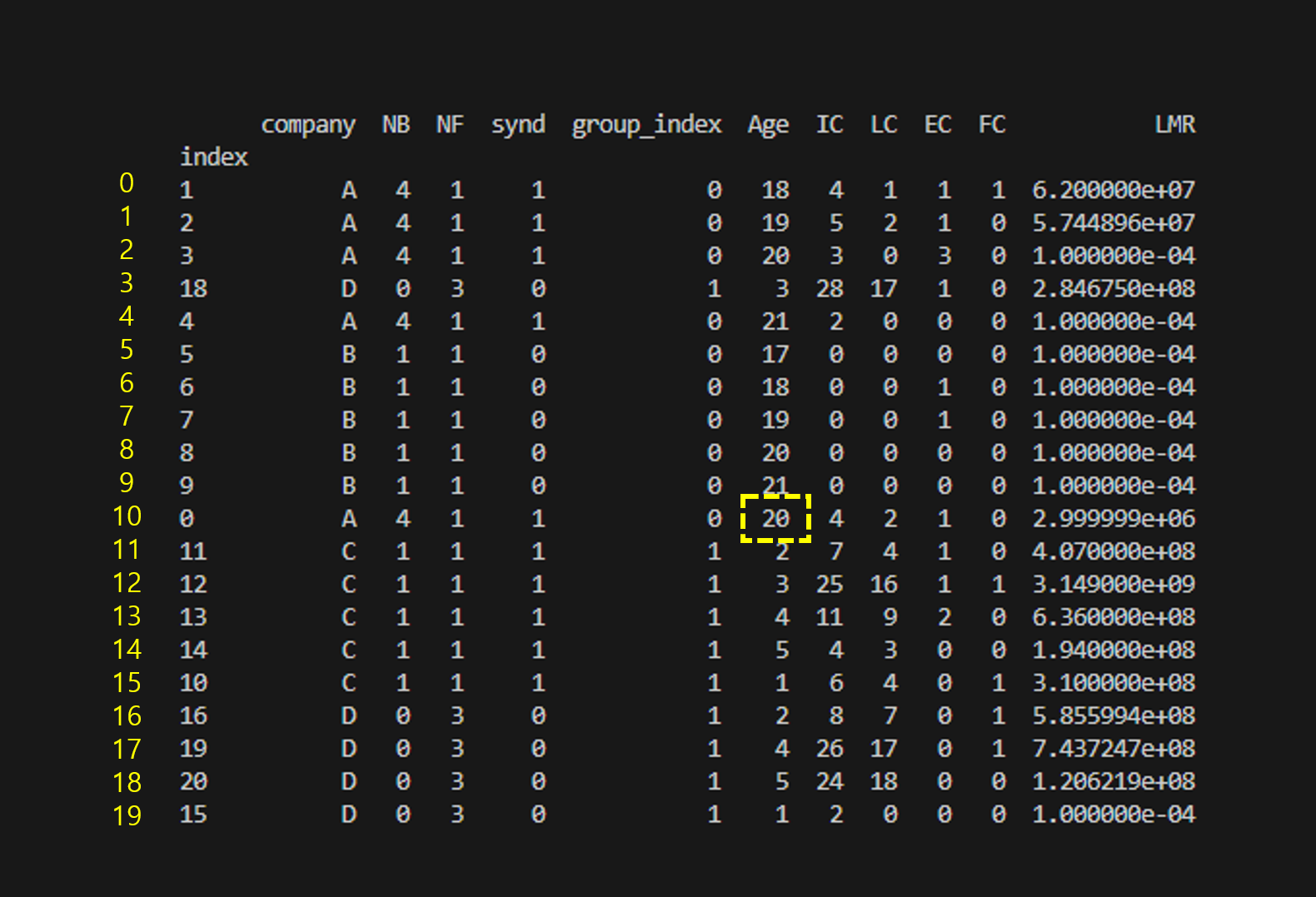 다만 엑셀과 차이가 나는 것은 시작이 1이 아니라 0에서 시작한다는 점이다.