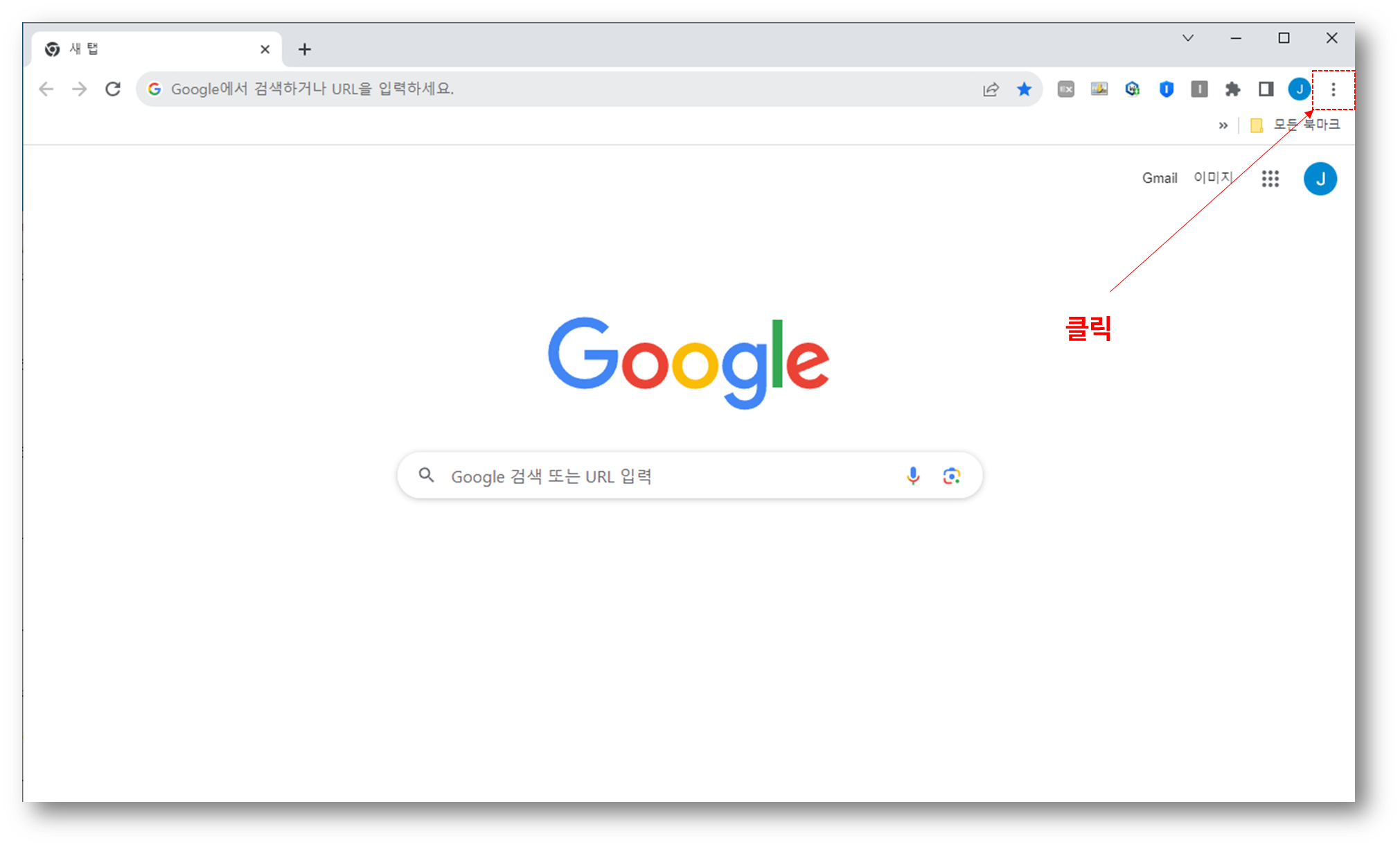 크롬 버전 확인을 위하여 먼저 크롬을 실행하자. 그리고 오른쪽 상단의 세로줄임표 ( ⋮ )를 클릭하자